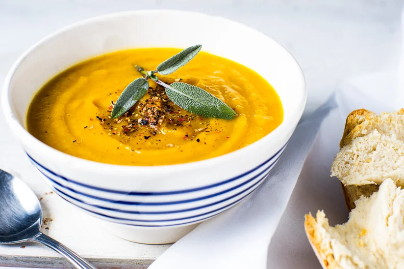 I LOVE Squash season and how plentiful so many types of squash are. Pureed squash soup is one of my favorites and combined with the flavor of curry spices it works so well with Autumn. This is a very fragrant soup that will have your tummy growling all day as the aromas fill the house.