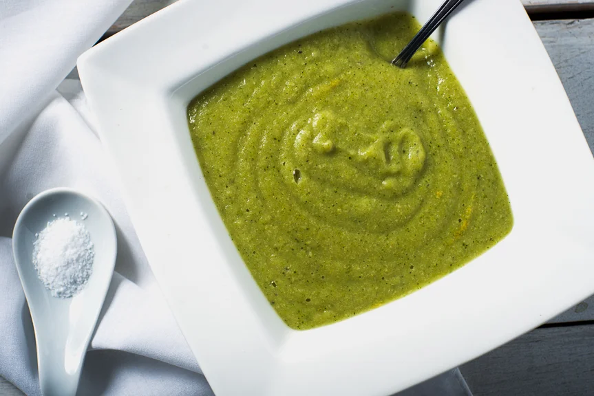 I really needed to use up some broccoli that I picked up last weekend at the Farmer's market. Because I did not have enough for my normal recipe I decided to combine it with some Brussels Sprouts which ended up making a really nice combination. This is a Vegan recipe which uses potatoes as a thickener instead of milk.