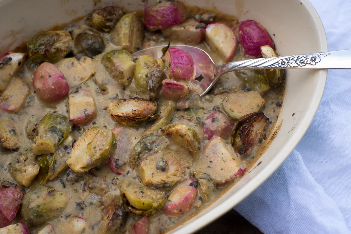 Busy with home projects and not a lot of time for cooking this week, this was exactly what we needed. I decided to try it mixed into some roasted vegetables that we also picked up at the market and the results were just great!