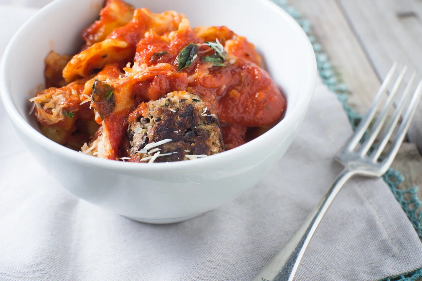 For an easy meal precook pasta and pour into a baking dish. Pour 1/2 a jar of sauce over the pasta. Add meatballs and cover with remaining sauce. Top with Mozzarella cheese and bake until melted.