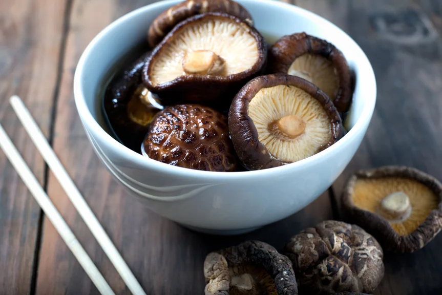 ~8 dried shiitake mushrooms that have been rehydrated and sliced.