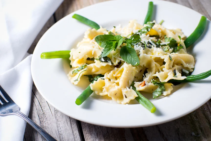 My tomatoes are not quite ready so I decided to make an easy Olive Oil and garlic sauce along with some fresh beans and basil that is ready in my own backyard garden. The great thing about a pasta recipe is that simple is better.