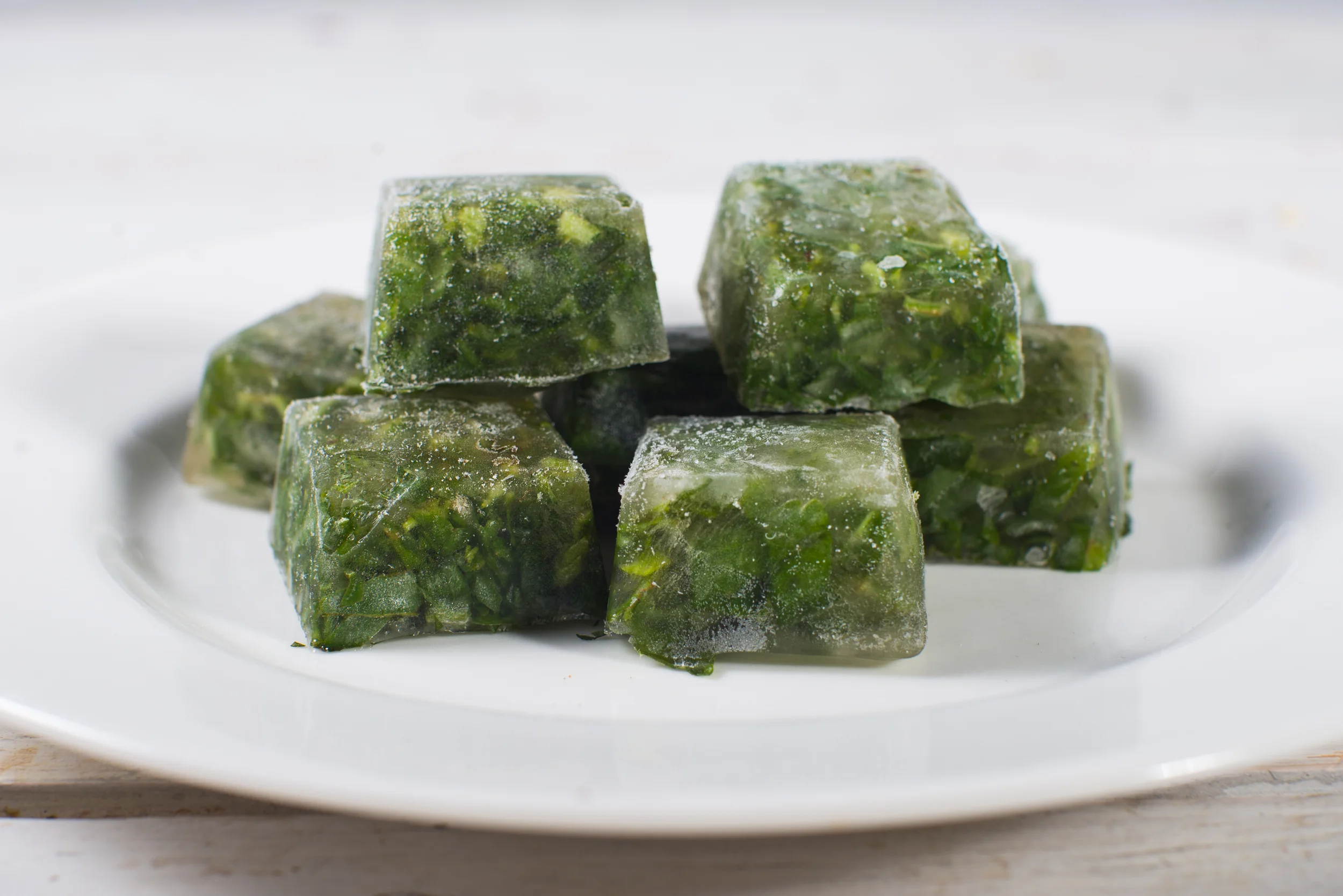 Another really useful way to preserve basil is to freeze it in ready to use servings as a fresh herb. This is quite easy to do; just chop and add to an ice cube tray. Add enough water to cover and freeze. Store the herb cubes in a plastic bag. This is handy for when you just need to add some fresh herbs to any dish and the minimal amount of water won't dilute your recipe. And I know that a cube contains about 2 TBSP of basil so no measuring is needed.